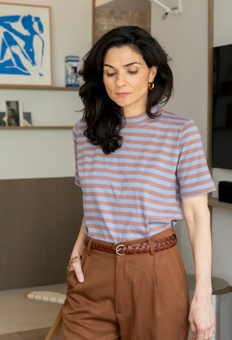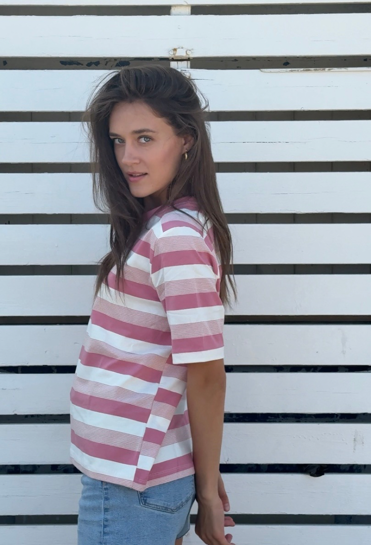Lori light brown and light blue stripes short sleeves T- shirt
