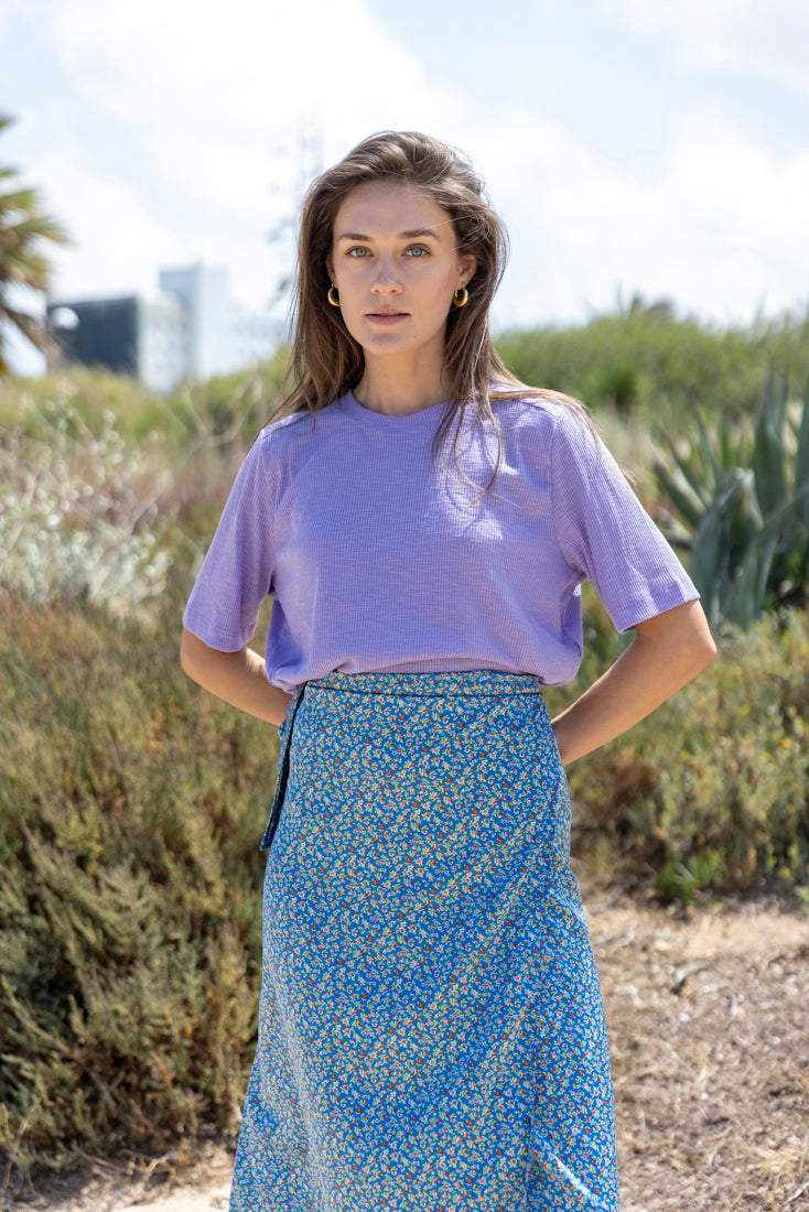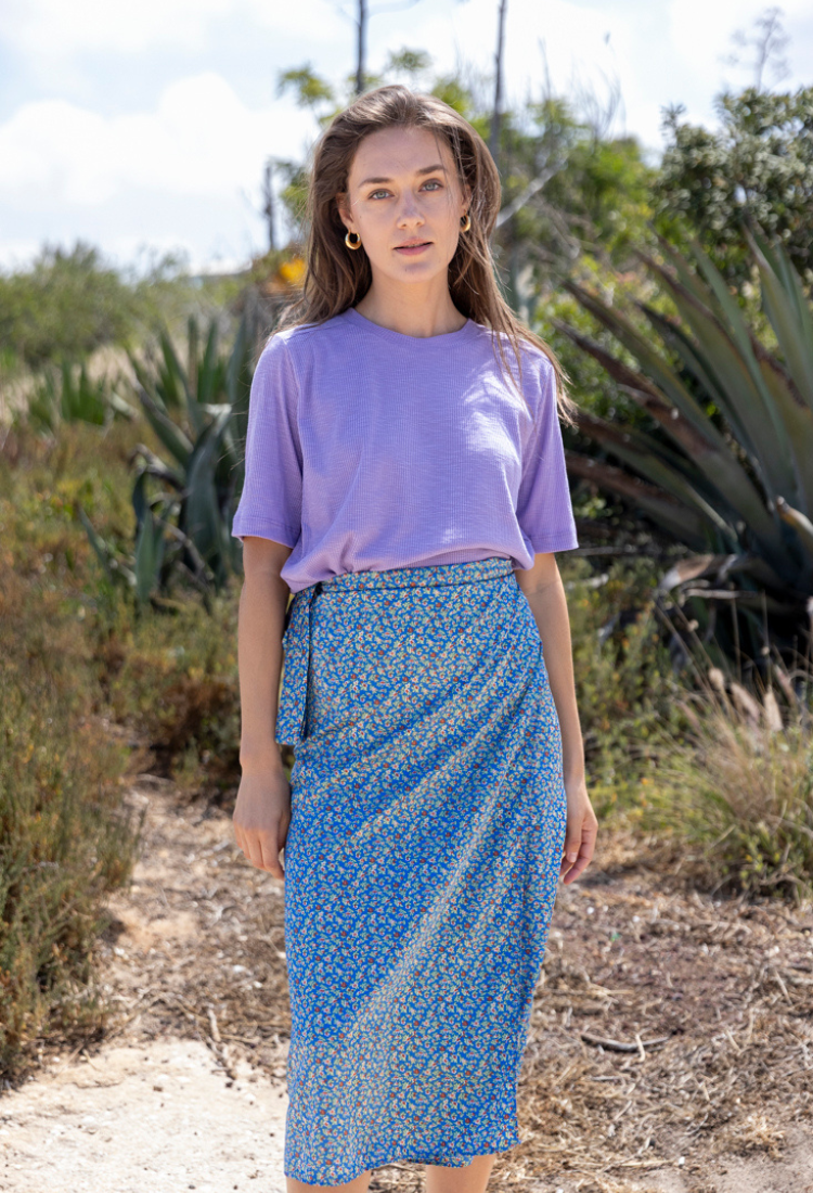 Lee light blue with floral print wrap skirt