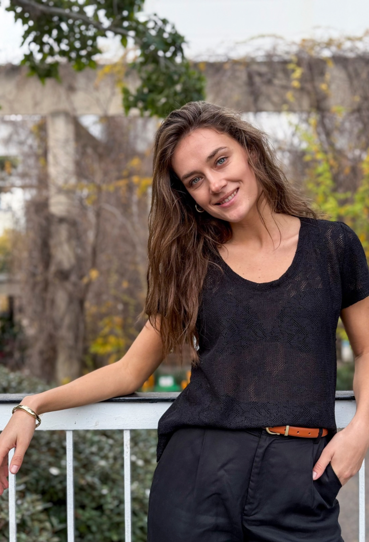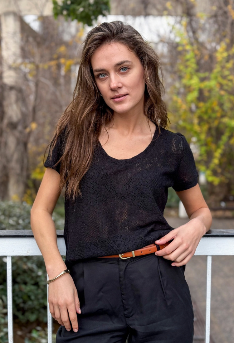 Ayelet black crocheted cotton round neckline short sleeves shirt