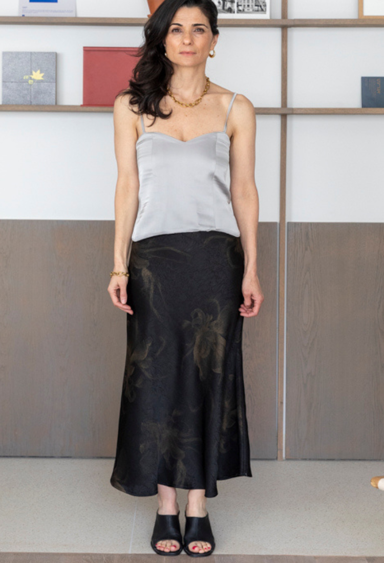Jasmine black with big flower print maxi skirt