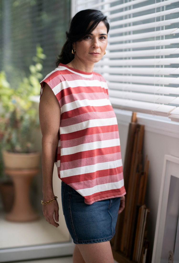 Gili red stripes sleeveless shirt