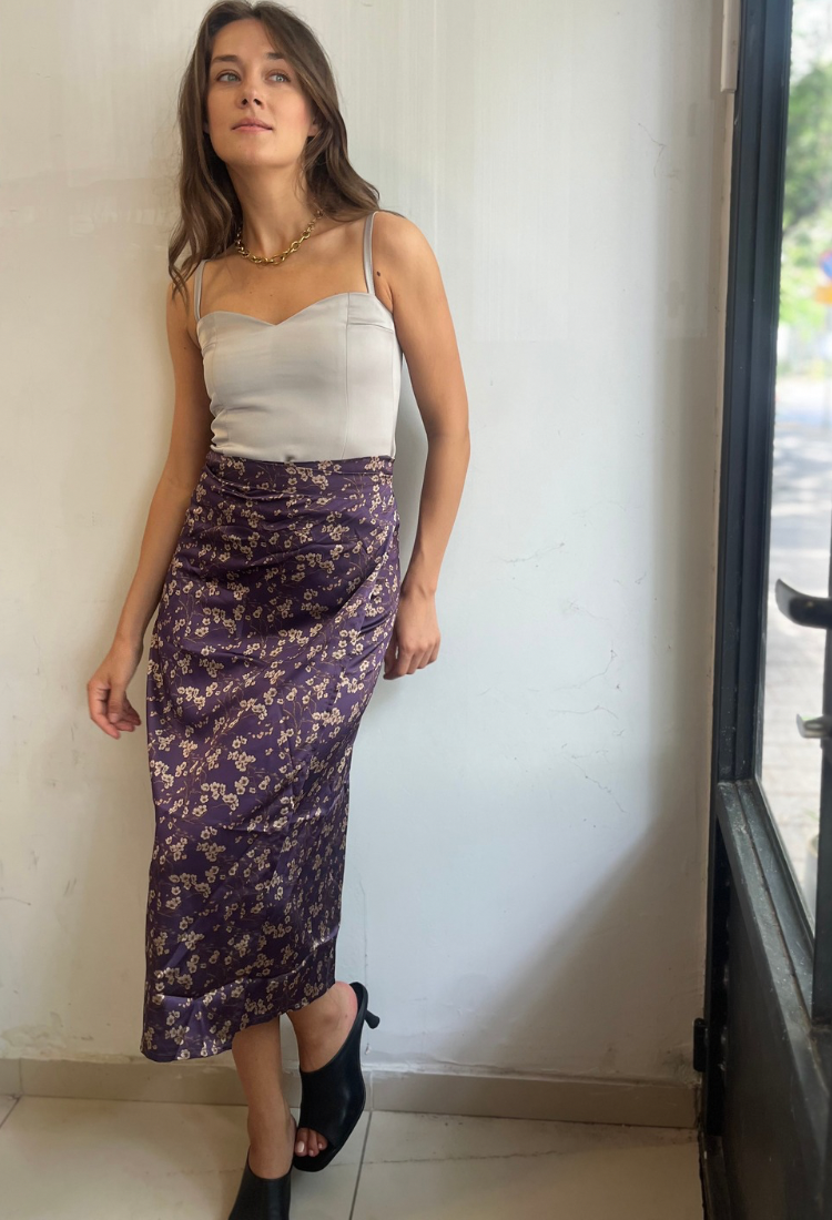 Lee purple floral print wrap skirt